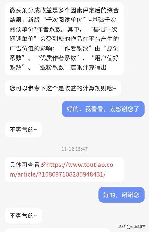 首先,你得知道,头条的收益主要来自于广告分成。简单来说,就是当你发布的内容有人阅读、点赞、评论或者分享时,头条会根据你的内容质量和用户互动情况,给你一定的广告分成。
